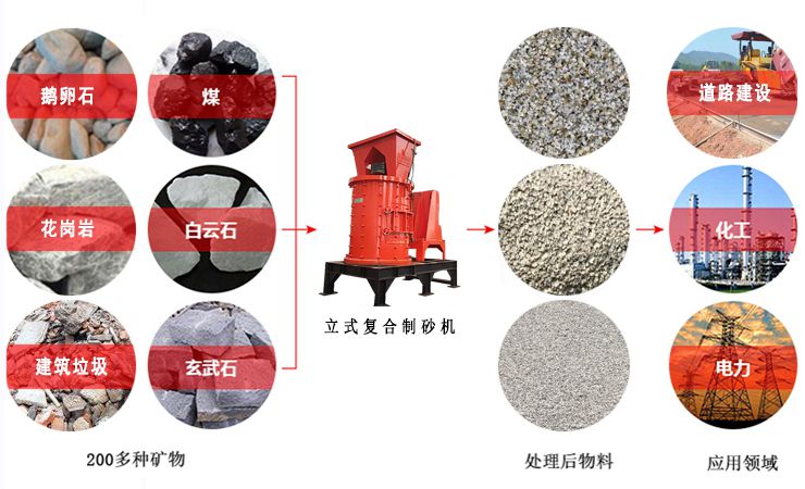 工作原理:立軸板錘復(fù)合制砂機(jī)又稱重型復(fù)合式制砂機(jī)立式復(fù)合制砂機(jī)。該機(jī)型分為兩種,一種是輕型,一種是重型。因破碎的原料不同,所選用的設(shè)備也會(huì)很大的差別。我公司生產(chǎn)的立式板錘復(fù)合制砂結(jié)合國(guó)內(nèi)外細(xì)碎技術(shù)進(jìn)行優(yōu)化設(shè)計(jì)而成的新產(chǎn)品,其性能已達(dá)國(guó)內(nèi)先進(jìn)水平,用于破碎各種中硬礦石,可廣泛應(yīng)用于礦山、冶金、耐材、水泥、煤炭、玻璃、陶瓷、電力等行業(yè)。